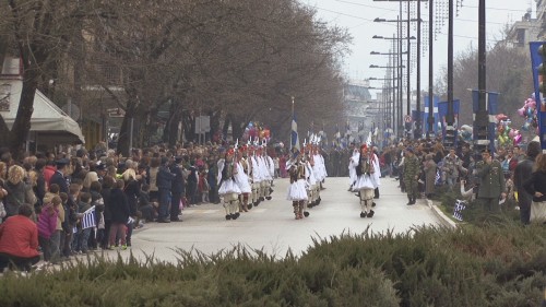 Στη συνέχεια πραγματοποιήθηκε η εντυπωσιακή παρέλαση την οποία παρακολούθησε πλήθος κόσμου που είχε συγκεντρωθεί απο νωρίς το πρωί στο κέντρο της πόλης .